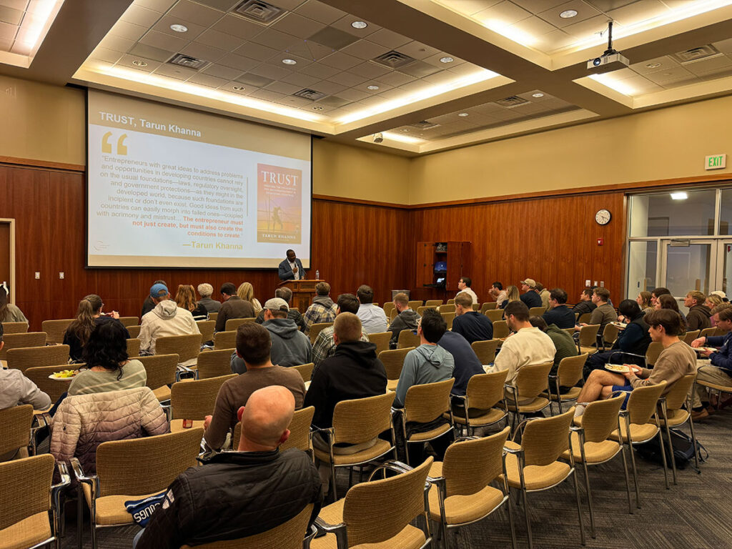 Efosa Ojomo explored how entrepreneurship and innovation can create wealth and generate prosperity at BYU Marriott School of Business. Efosa is the leader of the Global Prosperity Research Group at the Christensen Institute and co-author of The Prosperity Paradox: How Innovation Can Lift Nations out of Poverty.
